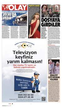 e-gazete.olay.com.tr internet sitesinde yayınlanan yazı, haber, resim ve fotoğrafların her türlü telif hakkı Olay Basın ve Yayıncılık A.Ş.’ye aittir.